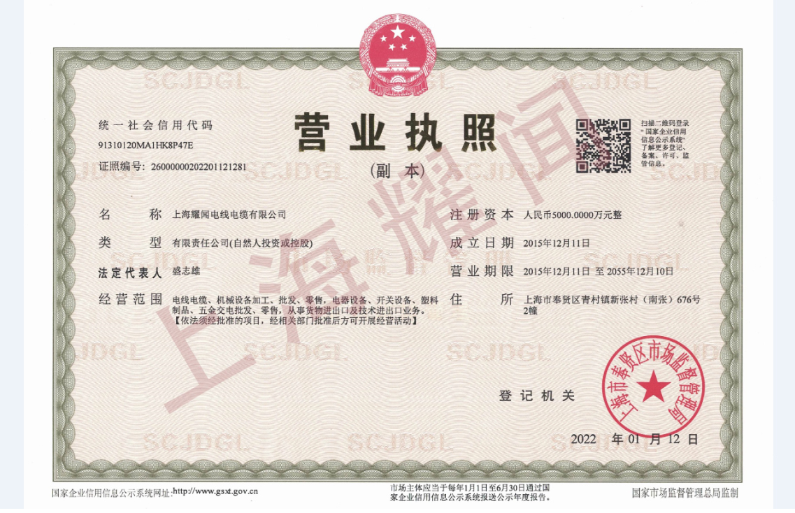 上海耀聞電線電纜有限公司成立于2015年,注冊資本5000萬元人民幣。是一家專注于電線電纜的研發、生產及銷售的高新技術企業。